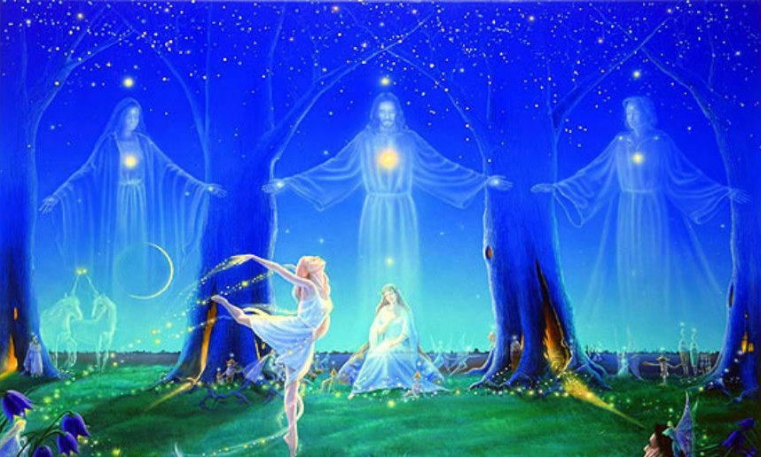 Přeneste své vědomí do chrámu se světelným amfiteátrem. Amfiteátr může být venku odkrytý nebo se nacházet v budově. Stoupněte si doprostřed a vnímejte, jak se okolo vás na schodech objevují bytosti světla. Otáčejí k vám své zářivé ruce či energii vydechují a vysílají k vám světlo. Vdechujte ho a vnímejte kolem sebe i v sobě. Každým svým pórem pokožky, každou buňkou se naplňujte světlem. Nadechujte ho i ústy do svých plic a do celého těla. Nádherně záříte, světlo je všude kolem vás i ve vás. Můžete rozeznat některé Mistry a navázat s nimi telepatickou komunikaci či od nich obdržet dárek. Mohou za vámi přijít i vaši drazí zesnulí. Kolem vás se utváří panel světla. Začíná se v něm měnit vaše Dna na světelné, krystalické. Vnímejte, jak se přidávají další a další šroubovice. Nové Dna se šíří do všech buněk, se všemi spolupracuje a září.